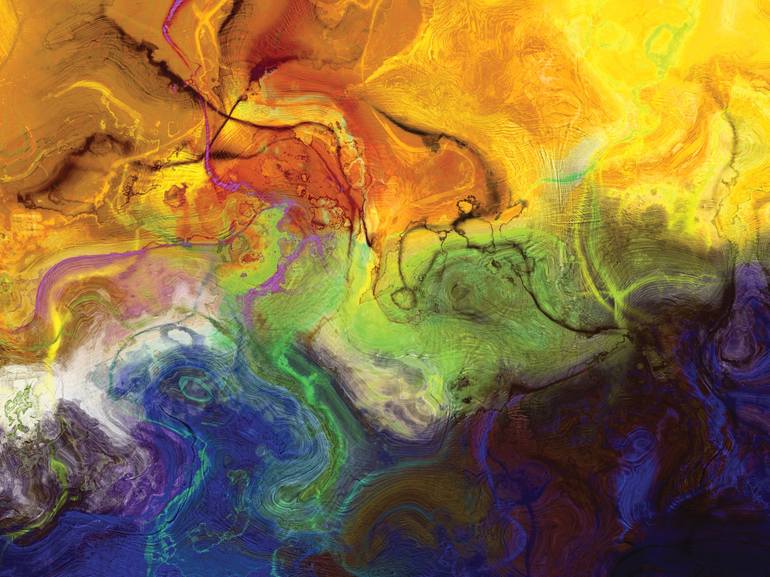 Thank you very much for visiting my store. Abstract and colorful works with a lot of texture and organic shapes like marble textures, plenty of brush strokes like paint flowing or dripping. Signed and numbered certificate of authenticity attached. Monumental artwork shows many impressive details an...