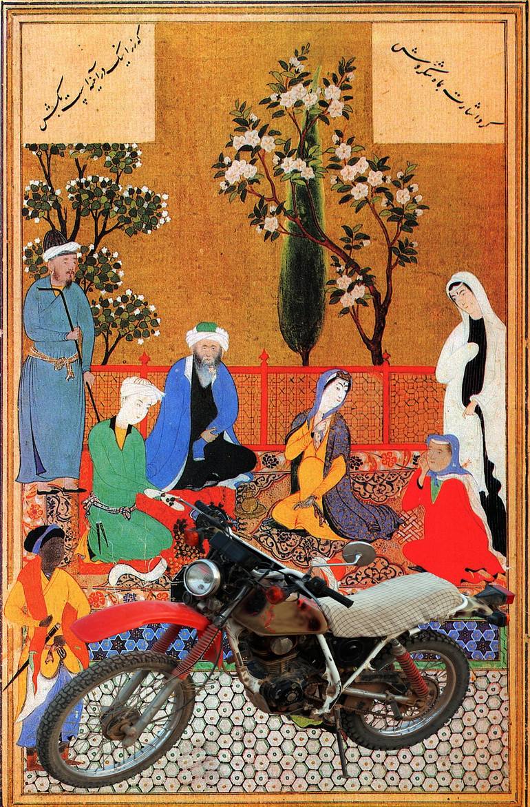 Paradox of Heritage emerges as an artistic commentary on the coalescence of the timeless elegance encapsulated in Persian miniatures with the stark intrusion of military items and personnel. This juxtaposition serves as a metaphor for the intricate dance between the enduring cultural values of Persi...