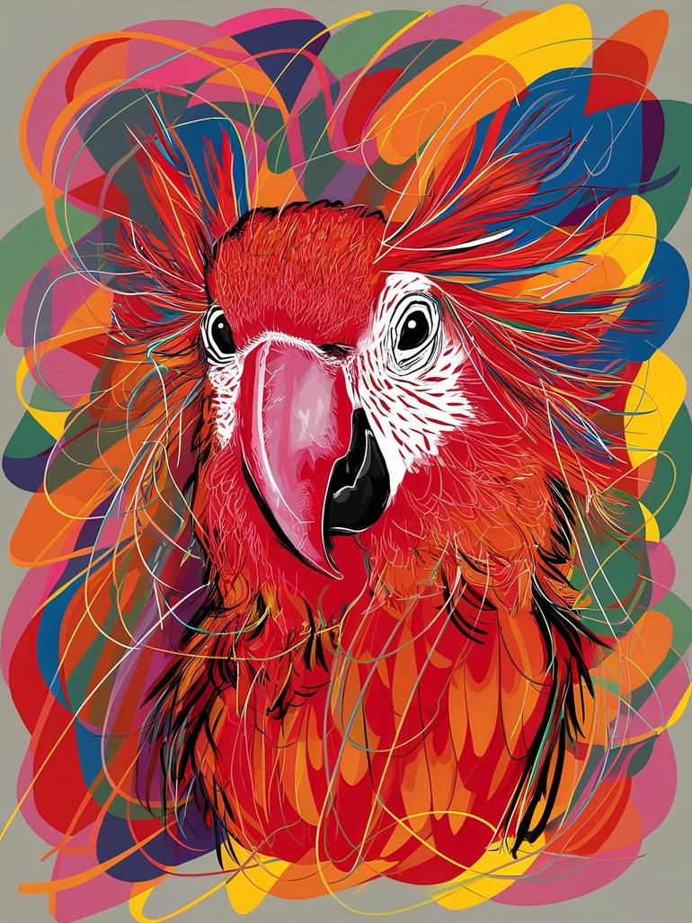 "Parrot in Motion" is a vibrant portrayal of a colorful parrot brought to life with intricate feather details and bold, radiant hues. The bird’s vivid plumage is complemented by a dynamic background of swirling abstract patterns, creating an energetic atmosphere that emphasizes the parrot's lively...