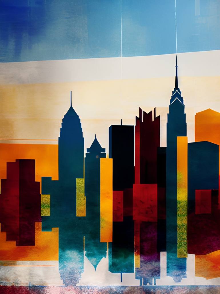 Add a modern touch to your home or office with this stunning Philadelphia skyline abstract cityscape print. The print features a unique blend of cityscape painting and abstract digital art, resulting in a one-of-a-kind piece of wall art. The bold lines and vibrant colors of the abstract cityscape ca...