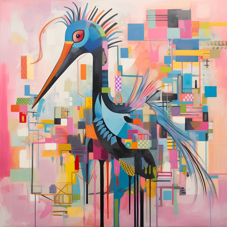 The painting draws inspiration from Pablo Picasso's Cubist style, reimagining a stork in a vibrant, abstract form. I chose this subject to blend nature with urban elements, symbolizing the coexistence of wildlife and human structures. The geometric shapes and bold colors aim to evoke a sense of joy ...