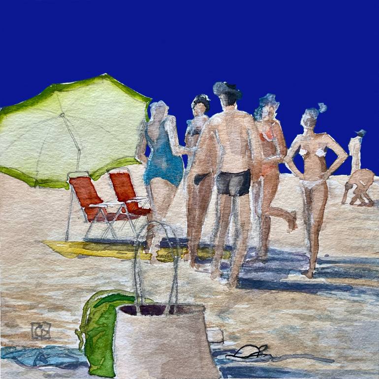 Sketch of a beach scene in watercolor and digital painting.