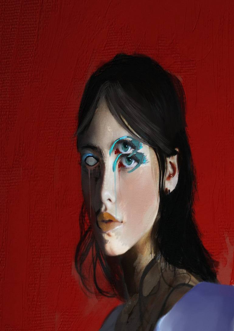 A portrait with a different look, gloomy and dark. Surreal and composed with an important mixture of digital techniques.