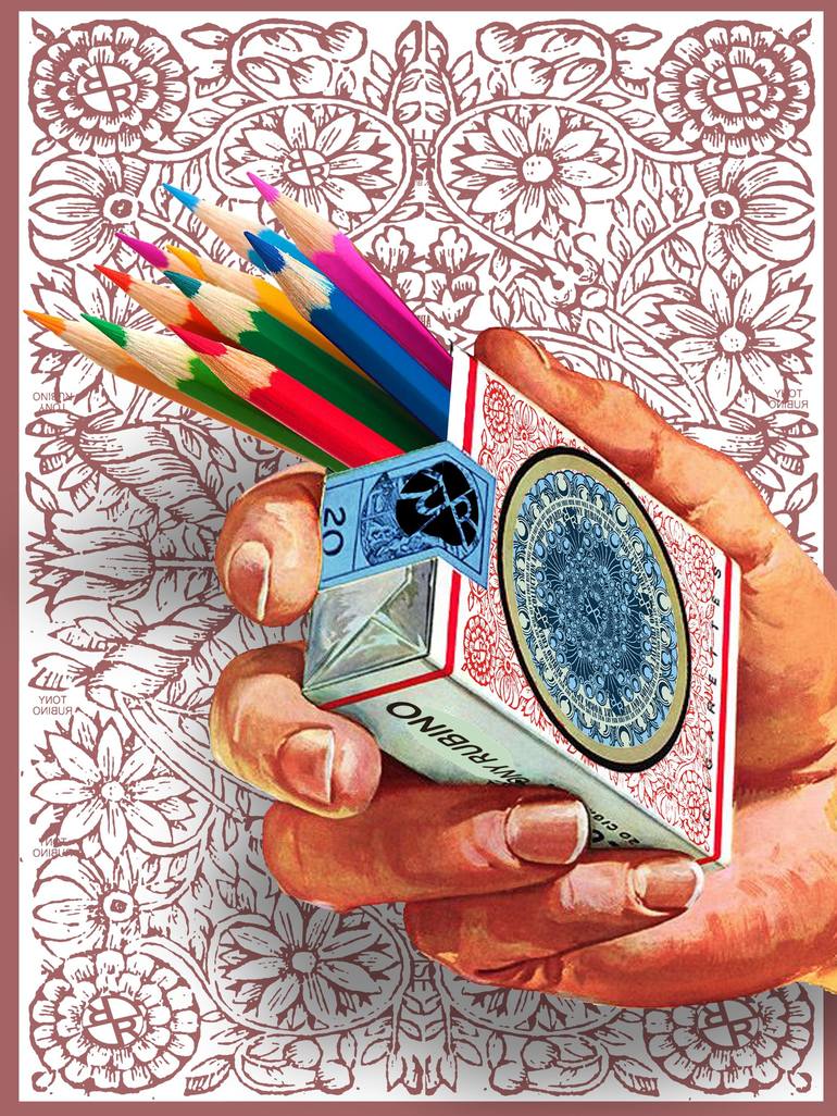 Rubino Propaganda may be bad for you. art, cigarette, text, written word, flower, petal, leaves, leaf, stem, grow, nature, tobacco, colored pencils, hold, namaste, artist's statement, logo, zen, lotus, sexy, advertisement, ad, gray, grey, abstract, artwork, flower, floral, blue, teal, design, patter...