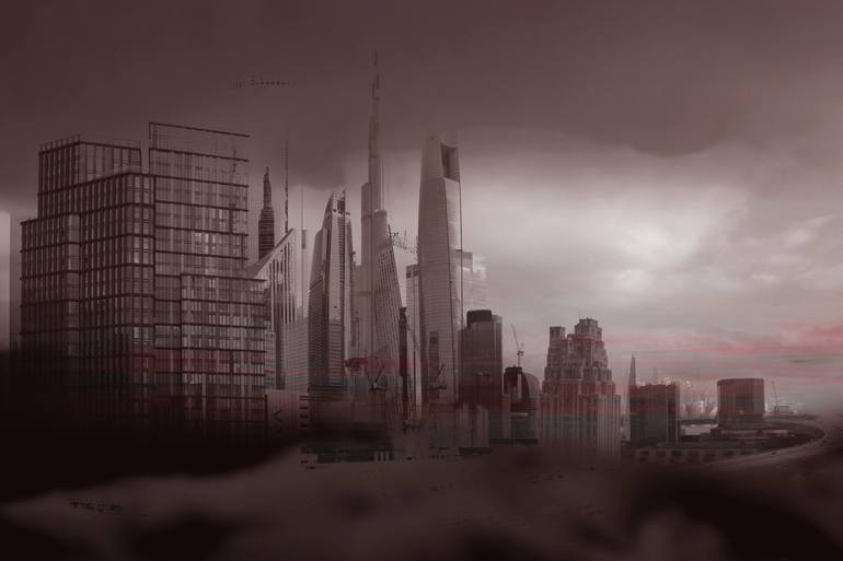 Dystopian vision of a Smog City inspired by Fritz Langs Metropolis and Architecture from Dubai, London, New York and Shanghai