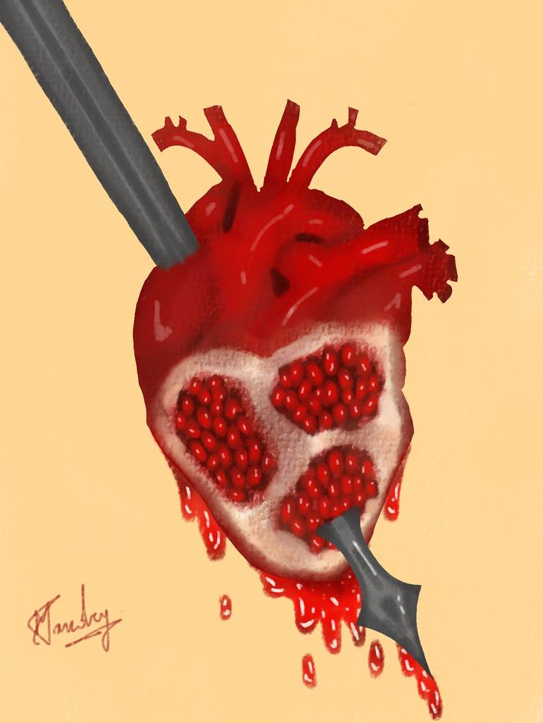 "Surreal Heart Art" is a captivating digital surreal painting that combines anatomy and fruit in a unique artistic fusion. Featuring a pomegranate-inspired art concept, this piece evokes deep emotional symbolism through its anatomical heart design. Key features include: Pomegranate Heart Concept: A...