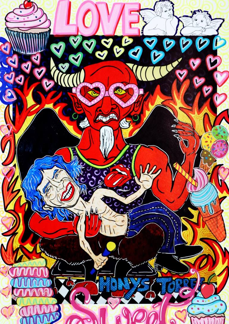 Sweet Digital collage, 2025 – Honys Torres Sweet portrays Mick Jagger, frontman of the Rolling Stones, as a pop icon sweetened by new generations. Since the band proclaimed themselves Their Satanic Majesties in the 1960s, Jagger has embodied provocation, spectacle, and rebellion. His voice, felin...