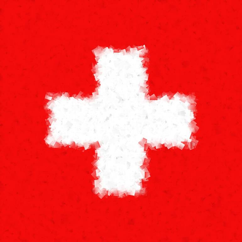 Reinterpretation of the national flag of Switzerland in contemporary abstract style