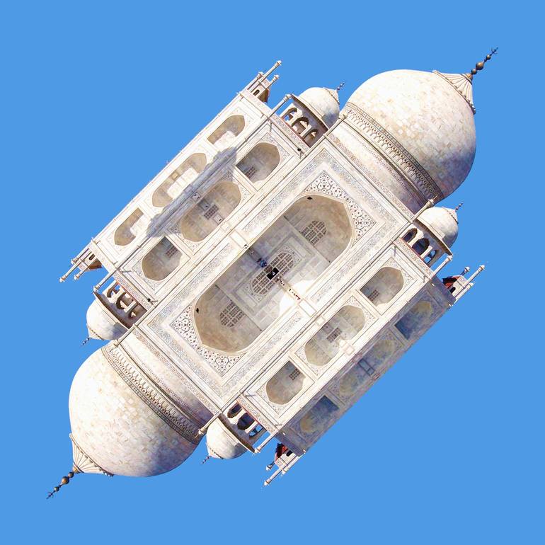 illusion, surreal, float, floating,, collectable, taj mahal, arabic, india, scenic, hobbies, coke collection, collectors. crushed, painting, pop art, soda, drink, beverage, corporate, design, graphic, color, colorful, red, silver, gray, grey, black, yellow, blue, green, gold, ivory, empty can, ameri...