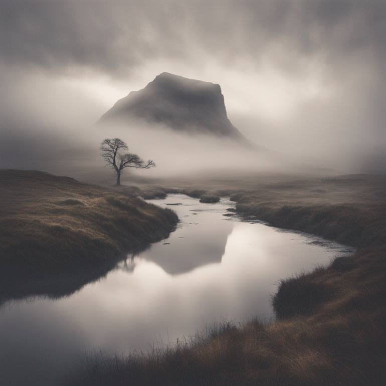 The painting is particularly interesting because the absence of colors creates a mysterious and timeless atmosphere. The fog obscures details and creates depth, encouraging the viewer to complete the scene with their own imagination. The monochrome palette enhances the contrasts between light and s...