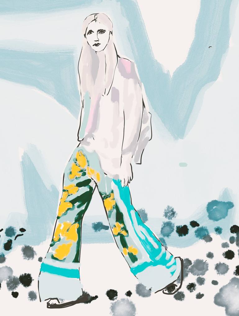 "Time Travelers Passage" is a unique, figurative fine art print, created using digital techniques on an iPad. This contemporary drawing is printed in the artist's studio with archival ink on high-quality fine art paper with a white border. The surreal image features a woman surrounded by roses in a...