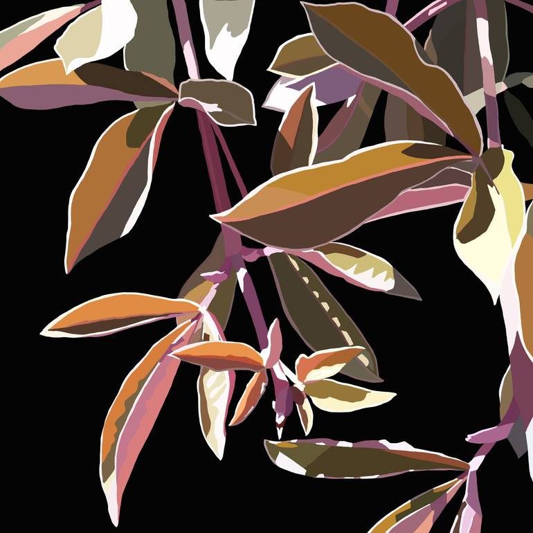 Digital hand drawn illustration with tropical leaves on a black background. Beauty of nature, Design and decor.