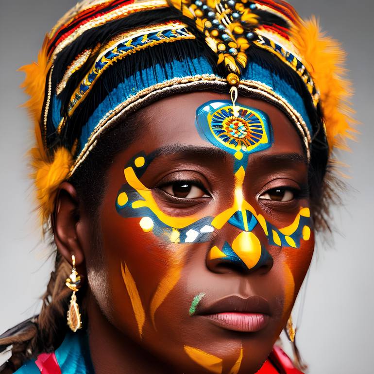 In this captivating image, a face is adorned with vibrant tribal markings, beautifully expressing the individual's cultural heritage and personal identity. The intricate patterns and rich colors tell a profound story of tradition and belonging, showcasing the power of art to celebrate diversity and ...