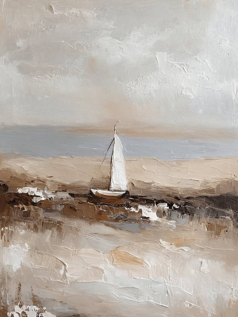 In hues of azure and sandy gold, A vintage coastal scene unfolds, Abstract strokes, a masterpiece told, Of swirling waves and secrets old. The artist's eye, a vision sublime, Capturing nature's rhythm and time, Each brushstroke a lyrical rhyme, In this idyllic coastal climb. The sun sets low, a fi...