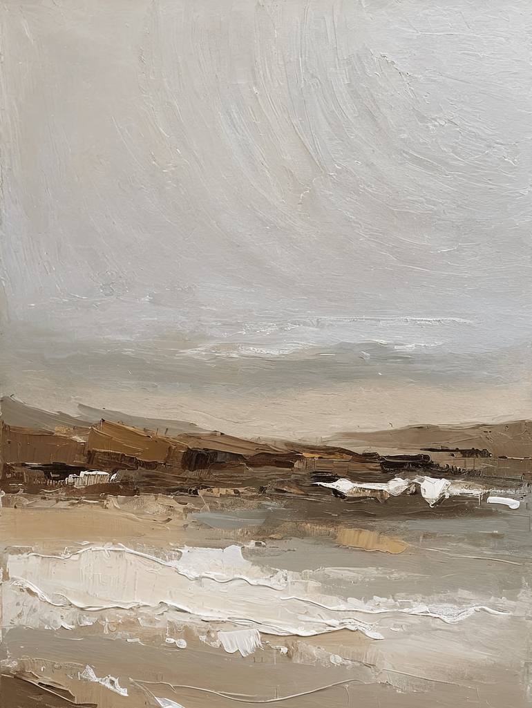 In hues of azure and sandy gold, A vintage coastal scene unfolds, Abstract strokes, a masterpiece told, Of swirling waves and secrets old. The artist's eye, a vision sublime, Capturing nature's rhythm and time, Each brushstroke a lyrical rhyme, In this idyllic coastal climb. The sun sets low, a fi...