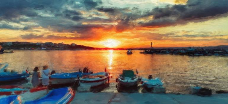 I was inspired by the beautiful colorful sunset, which is immersed in the flattering bed of whispering waves. I hope the audience will feel with their heart the beauty of nature and feel its relaxing power. I chose this topic because I long for an unforgettable summer, pleasant walks along the coast...