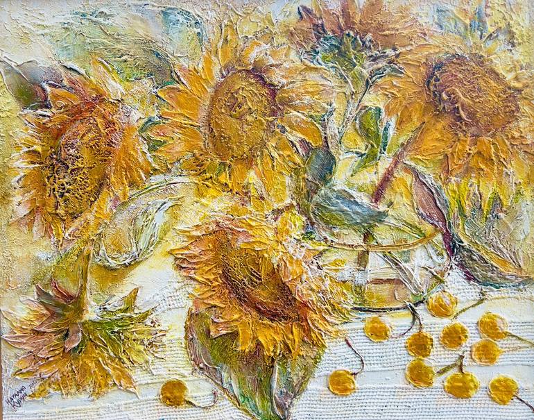 In this work I aimed to capture the liveliness and raw energy of sunflowers. Combining abstract and impressionistic styles, each brush stroke is a celebration of color and form, inviting thoughts about sustainability and renewal. Rich textures and golden tones are reminiscent of warm summer days and...