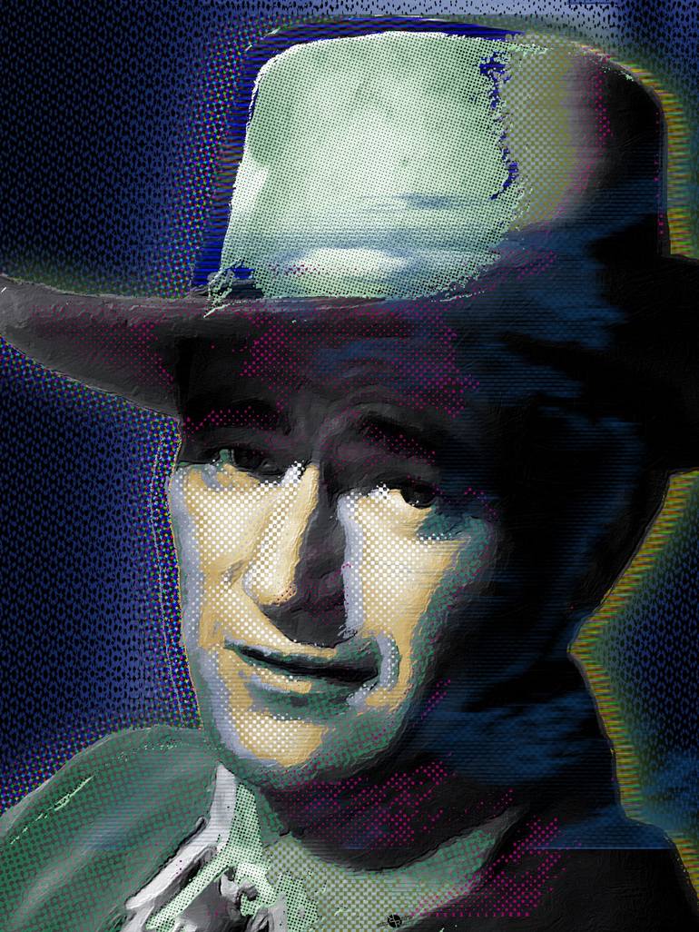One in a series of portraits of a young John Wayne. john wayne, the duke, duke, macho, academy award, face, portrait, celebrity, actor, hollywood, youth, young, oscar, movie, star, hat, cowboy, multicolored, blue, red, green, orange, black, yellow, gold, purple, western, america, director, the quiet...