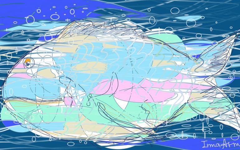 "My Big Unique Fish" is an original artwork born from a playful exploration of lines, shapes, and colors. This abstract piece began as a spontaneous sketch on a digital tablet, resulting in a unique and peculiar image of an animal. I enhanced a print of the digital artwork with markers, adding more...