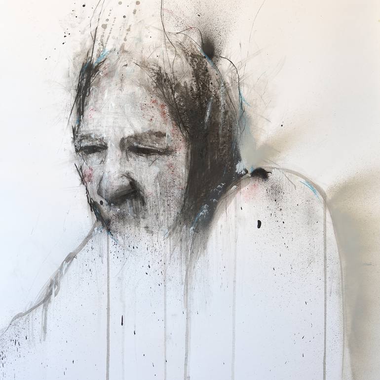 -charcoal,spraypaint,oil pastel ,and watercolor on watercolor paper -signed and dated on back -ships flat -