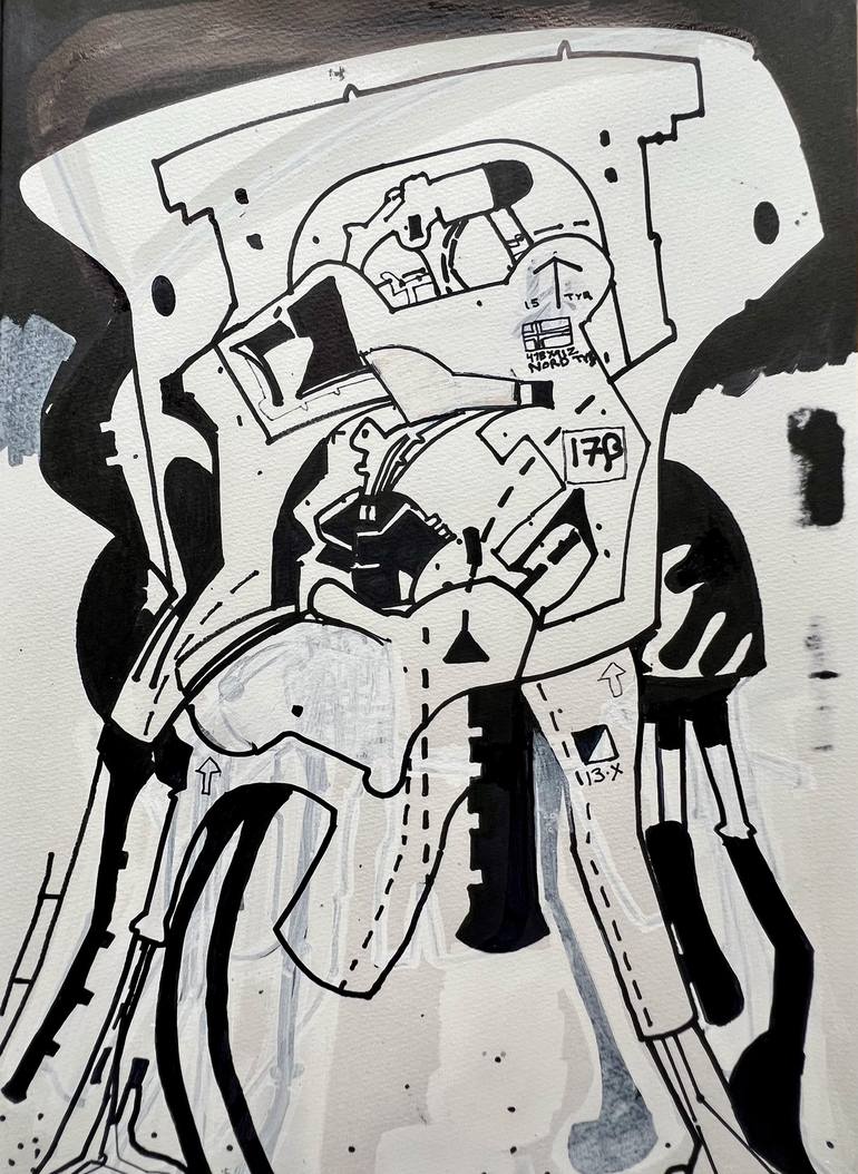 Autonomous Reconnaissance Probe - Snegurochka Planitia Quadrangle (V-1), Venus. Ink on paper 9.85" x 13.85" May 26, 2025. Future tense, glitch in the cerebral manifest, future technologies, Offworld installations, High Energy Optics, Shinjuku neon, SSTV (Slow Scan Television), hallucinogenic image s...