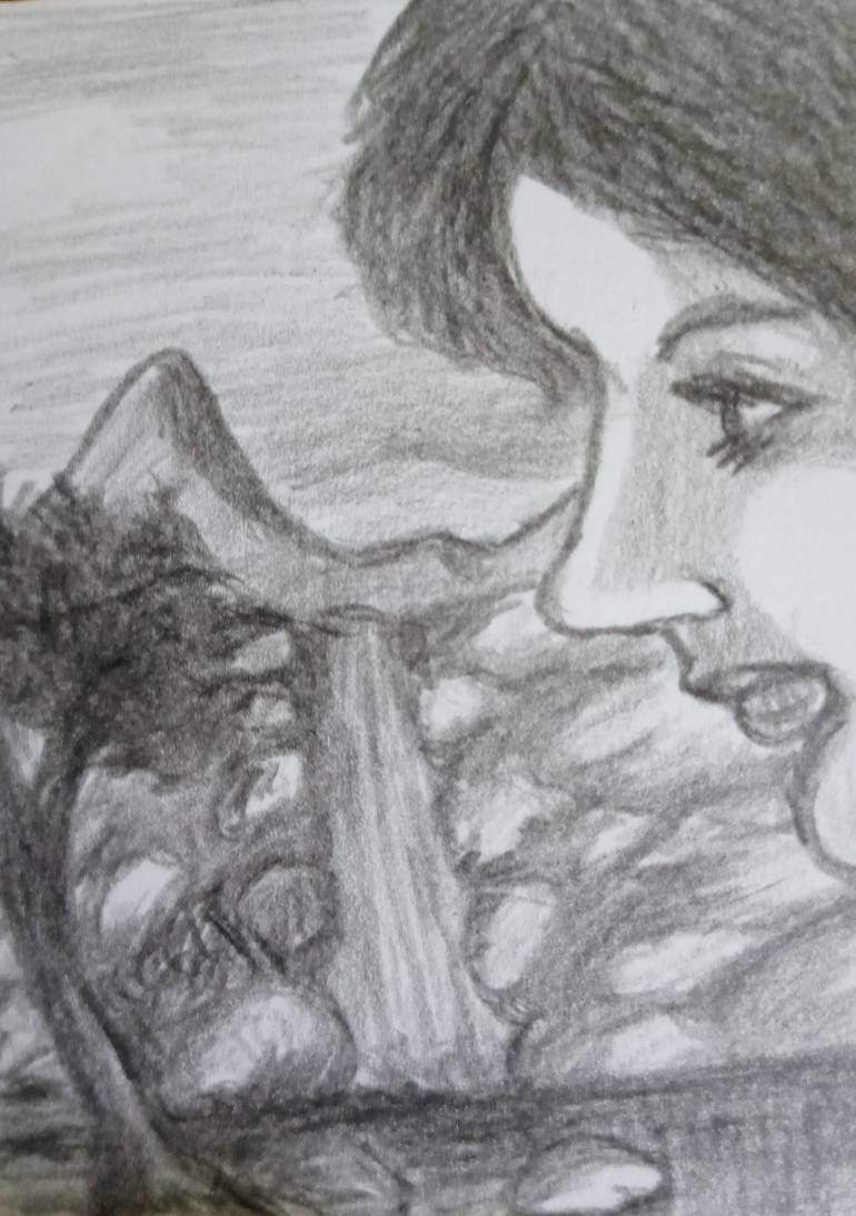 I love nature. It is especially become more beautiful when a pretty girl is present. Isn't it so? The medium is color pencil and used only black. But I think you like it.I think black and white will enhanced the beauty more than using color.