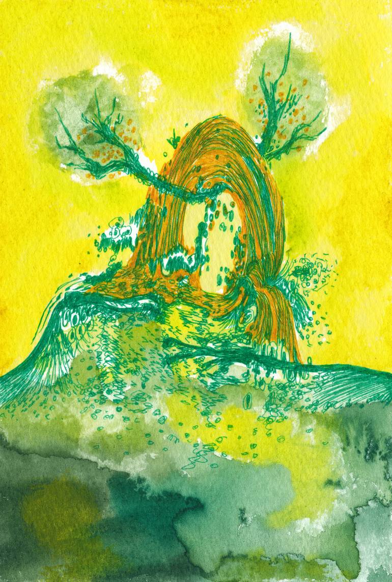 Unframed. A hill [#SS19DW010] 2019, Watercolor and Pen on Acid-free Paper, 5.8 x 3.9 in. / 148 x 100 mm Hand-signed by the artist on the back.