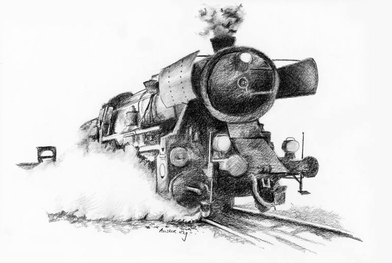 I tried capturing a Vintage steam locomotive in oil based charcoal medium, enjoyed doing the shading part of the white steam.