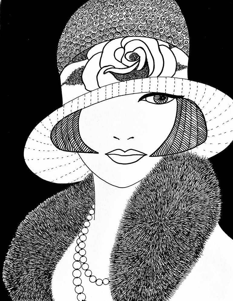 I love Art Deco for its architecture, artworks, geometric shapes, simplicity in design and distinctive art style. It has inspired me to do a portrait series in pen and ink of Art Deco Women utilizing these typical Art Deco elements.