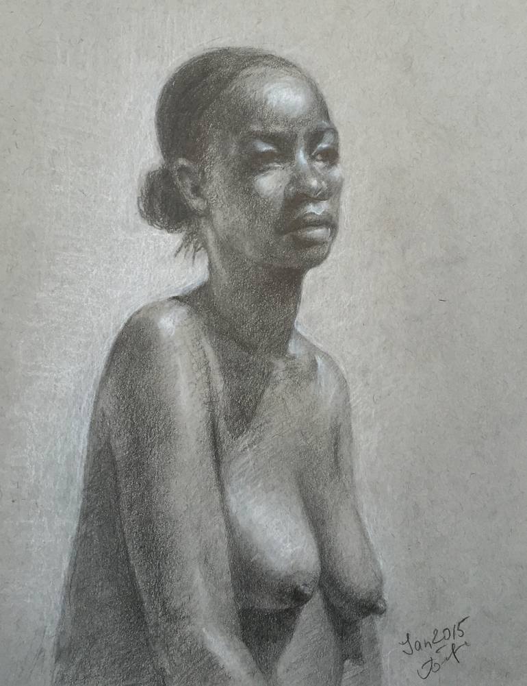 This is Original Fine Art Figure drawing. It's done from life using Graphite pencils and white charcoal on Toned gray drawing paper (80lb 118g) . African-american nude female is sitting on the stool. Paper size: 9" x 12" This is one of a kind original work signed on the front and back. If you have...