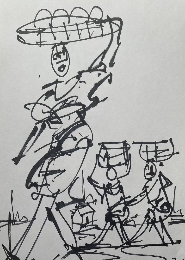 The African women farmers for my NFT series on Open sea. Hand drawn.