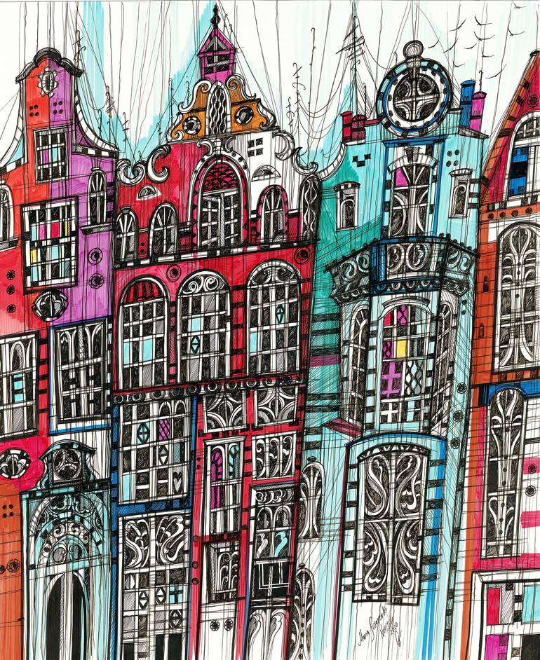 Amsterdam is one of my favourite city and it's the most inspiring place for me! I visited Amsterdam several times and it's amazing architecture inspires me so much. So here is my new bright colorful drawing of Amsterdam buildings! I created this artwork using different graphic tools, markers on a f...