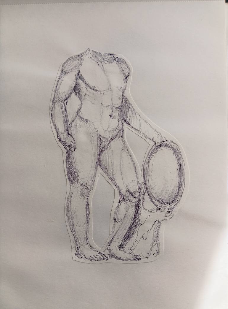 For this drawing, made with pen, I get ispired from the archeology, an ancient greek statue headless. The paper is 21 x 28,2 centimeters.