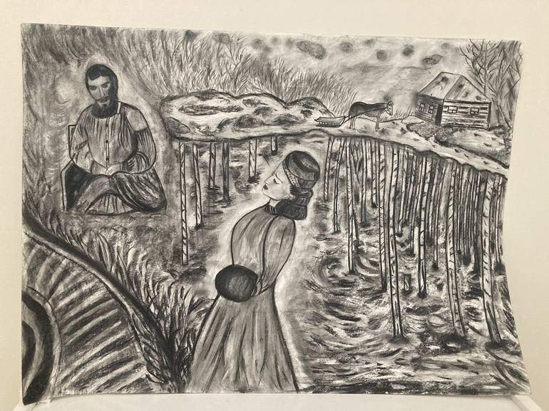 I wanted to make the illustration and my interpretation of the famous Tolstoy novel “Anna Karenina”. Used charcoal on the paper.