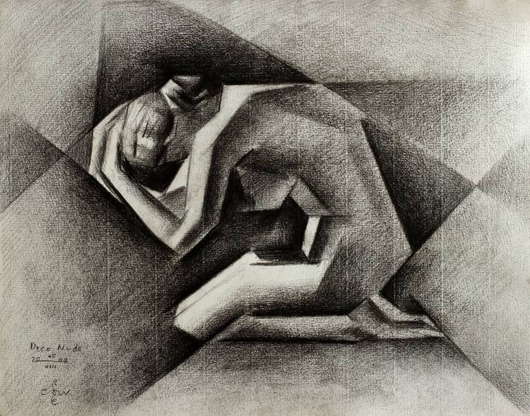 New Materials This Art Deco Nude as theme is not something new, the materials are. The last decade I have been using mostly Bristol paper for my graphite pencil drawings. It has a high resolution and enables me to throw in lots of details, although not always needed. My highly abstracted cubist nud...