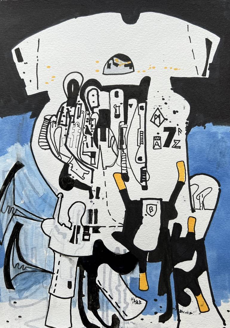 Copic marker on paper 6.75" x 9.75" November 19, 2025. Future tense, glitch in the cerebral manifest, future technologies, Offworld installations, High Energy Optics, Shinjuku neon, SSTV (Slow Scan Television), hallucinogenic image scans, Tactical operations center, organic prototypes, covert/stealt...