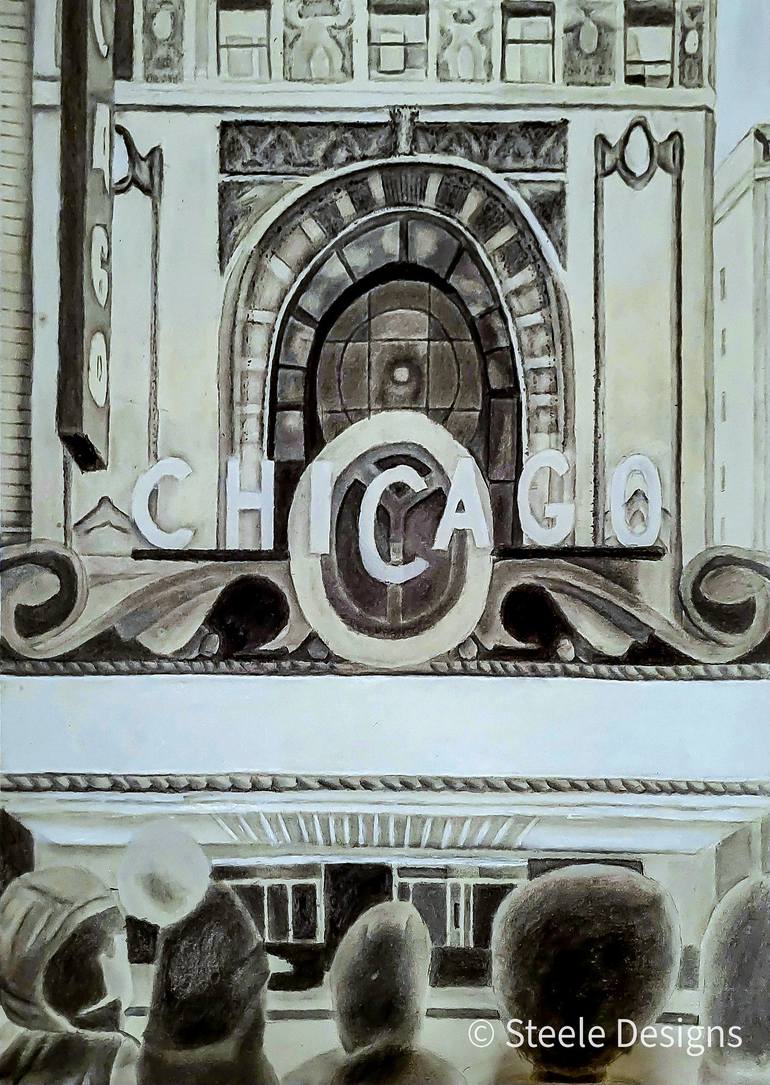 This is a 18in by 24in Charcoal on Toned Tan paper. It depicts some children standing on front of the Chicago Theater. It takes on the perspective as if you were standing behind them as part of their group. Because at one point in time, we were all considered "bad ass kids". Its very inclusive which...