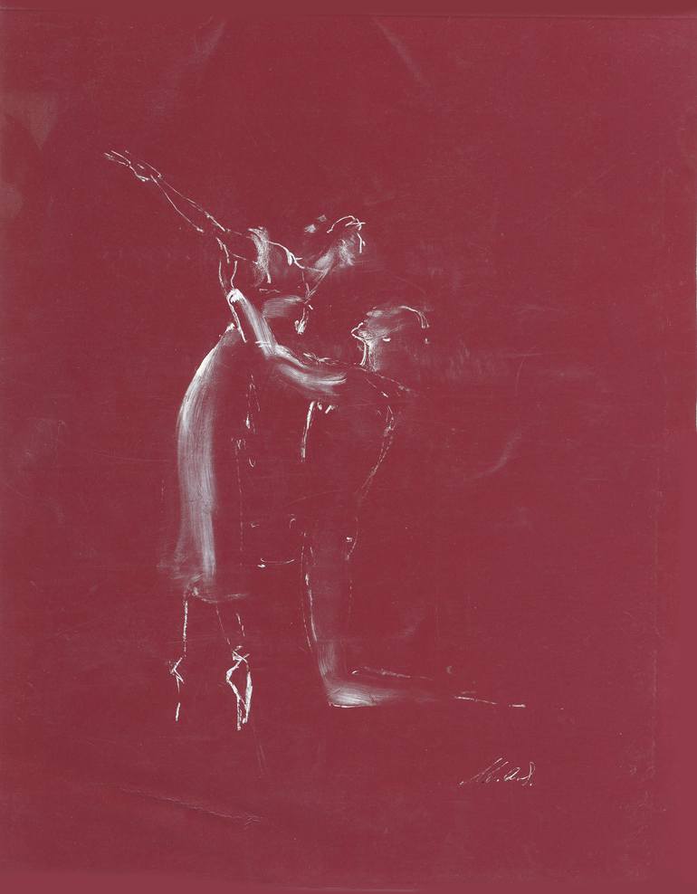 Ballet couple inspired by ballet artists Maya Plisetskaya and Alexander Godunov White ink + mixed media on colored A4 paper.