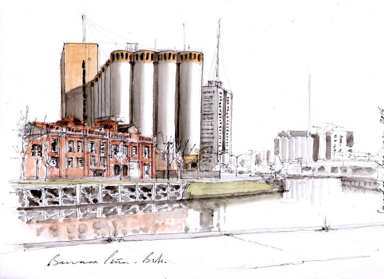 Urban sketches made ​​on site, Riachuelo, autonomous city of Buenos Aires, with pen and watercolor
