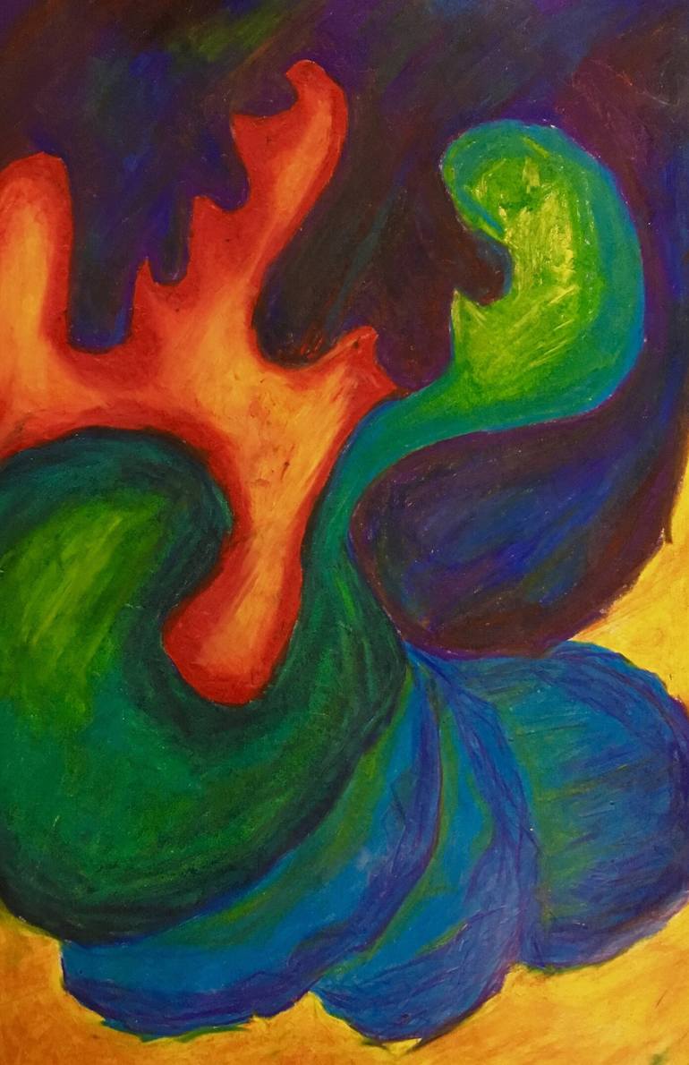 I had just been looking at two of my favorite artists, Marc Chagall and Jedd Garett. I was getting lost in their whimsical and abstracted way to capture reality, so it was of no shocked when some familiar imagery appeared in this drawing. And I went with it.