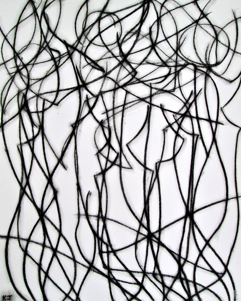 Improvised fusion of line in a free multiple-image composition; inspired by the female form. Fixed with professional fixative and rolled between acid-free tissue paper.