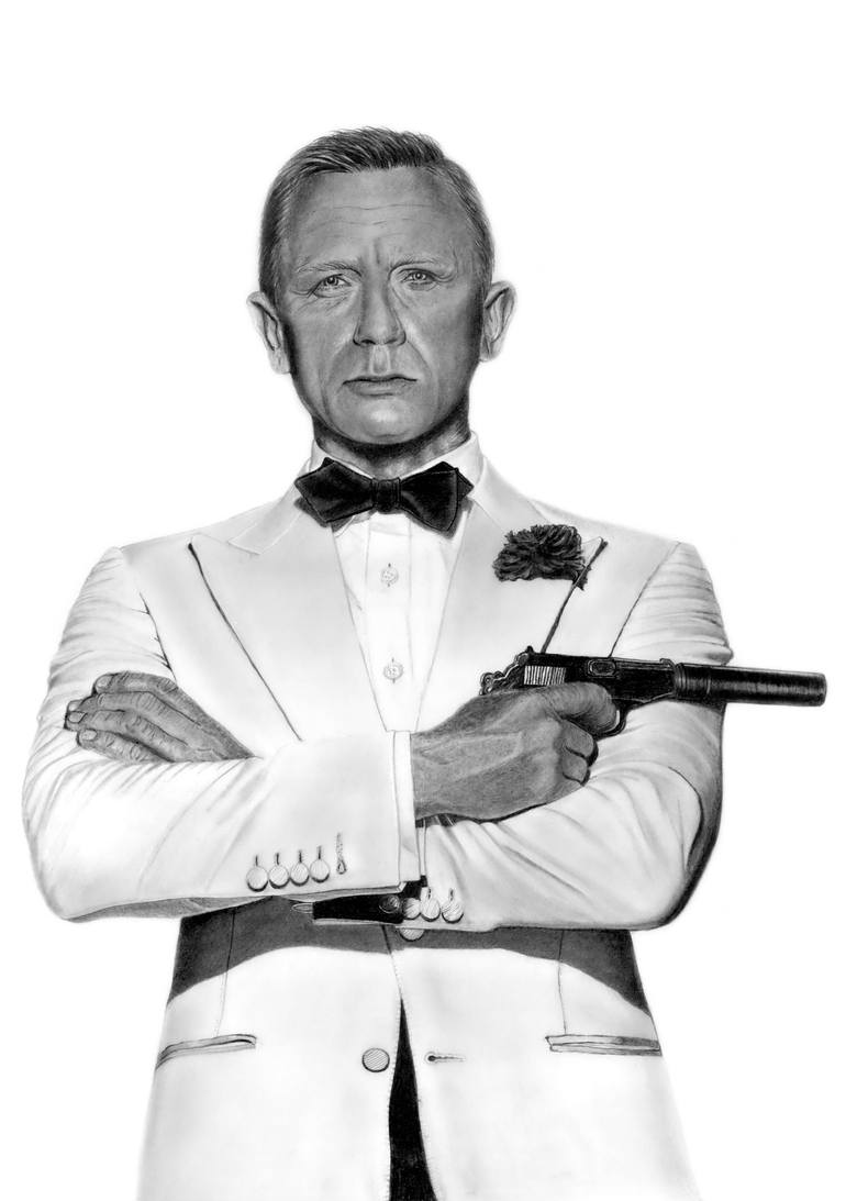 Original artwork description: An original Pencil drawing by Paul Stowe - Daniel Wroughton Craig CMG (born 2 March 1968) is an English actor, who gained international fame playing the secret agent James Bond in the film series, shown here from the film Spectre. Drawn as always on smooth Bristol Boar...