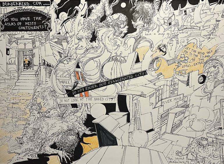 Ruken Aslan’s map of travel through the lines Ruken Aslan ́s map follows a different pattern. It is also based upon a research process, this time based upon her associations around the notion of the border through lines and each drawing is like a snapshot of the combination of her imagination with c...