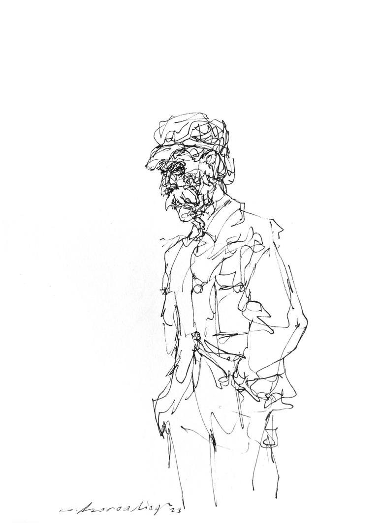 Sketch of a bored old man with marker on paper by Onur KARAALİOĞLU, 2023