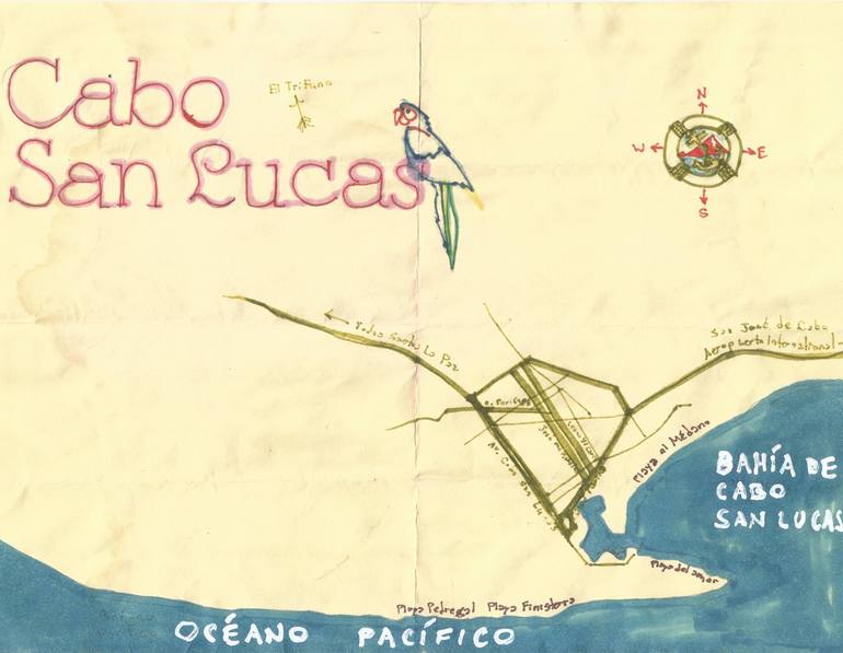 I visited Cabo San Lucas in 2011. One morning, I got up to explore the town and draw a map. As I stumbled past the drunk American tourists, it quickly became evident that Cabo San Lucas is very small and that I'd allotted more space than was needed for the map... but then I kind of liked the nothing...
