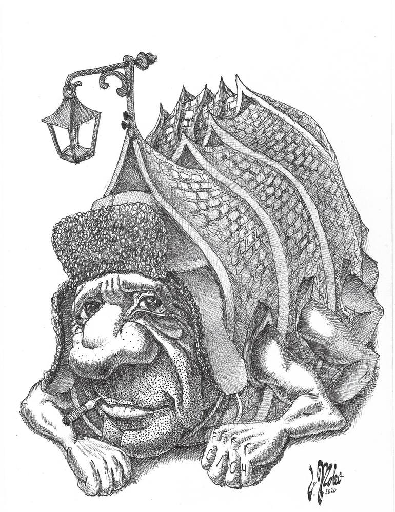 "Caterpillar GULAGus vulgaris" 2020 28x21cm Rapidograph on Papir This work is a unique original work of art - Painting by Victor Molev (Canada), Ink on Paper. The work has a rectangular shape, Its dimensions are 28x21 cm. The artist's signature is present on the artwork.
