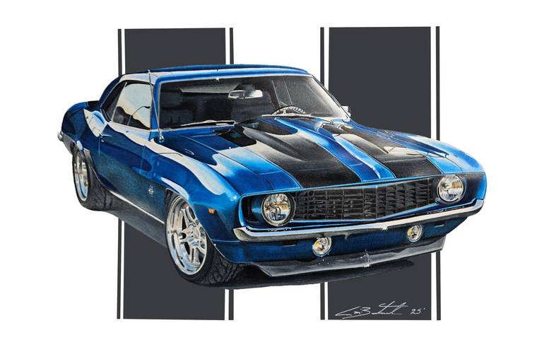 Say hello to Classic Blue. This is the 1969 Chevrolet Camaro. ( ORIGINAL ) Drawing. - Each piece is hand drawn using a graphite pencil with special techniques for perfection followed by a combination of unique alcohol markers and colored pencils carefully blended with detail. - Each piece is given ...