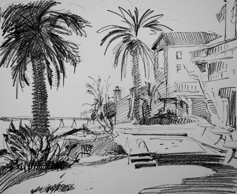 quick sketch of Cliff House inn in Ventura, interior patio and swimming pool.
