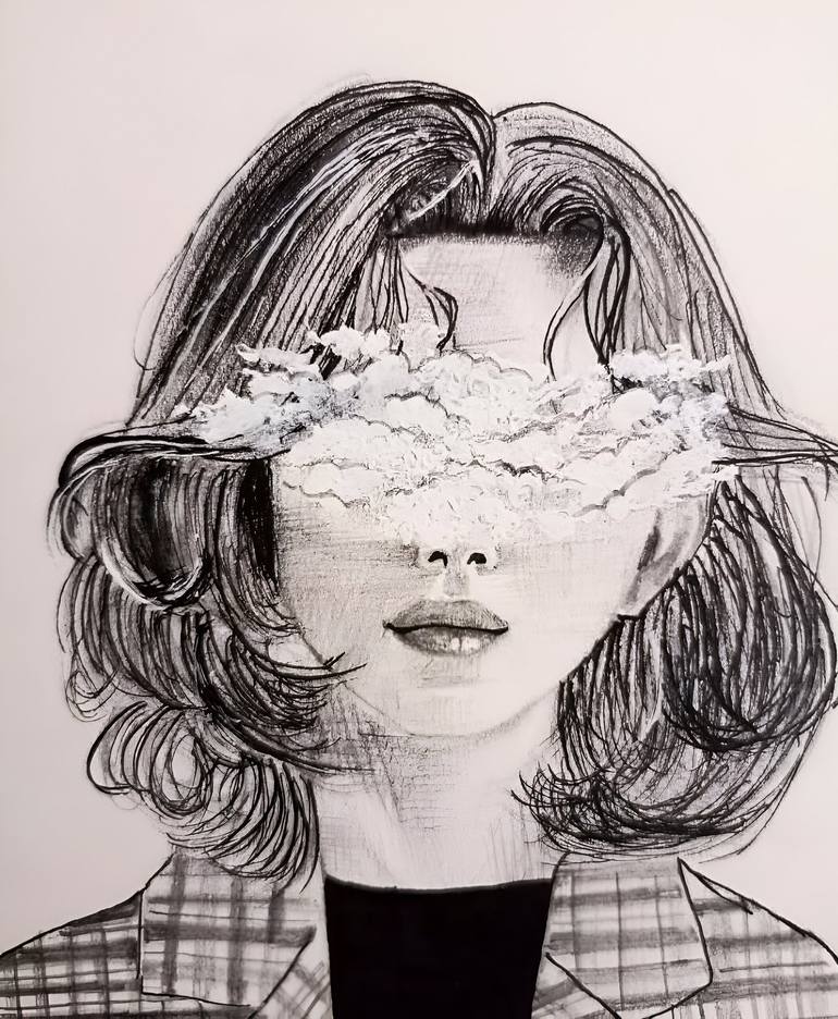 In Clouded Vision, the artist explores the tension between visibility and concealment. The portrait, rendered in expressive graphite lines, is disrupted by a textured veil of clouds obscuring the subject’s eyes—evoking themes of introspection, identity, and emotional opacity. This piece invites view...