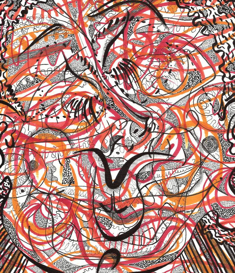Illustrative piece about one of the most beautifull faces I´ll never see againg. Side note: The orange marker traces of the original piece have a light yellow surrounding.